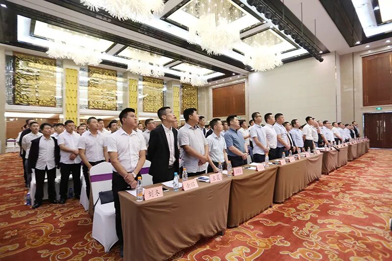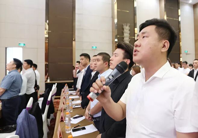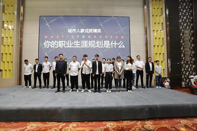 与会伊始,城市人家家人们全体起立,观看升国旗仪式。随后,在市场部经理任豪的带领下宣读《城市人家自勉文》和《城市人家销售团队12条军规》。